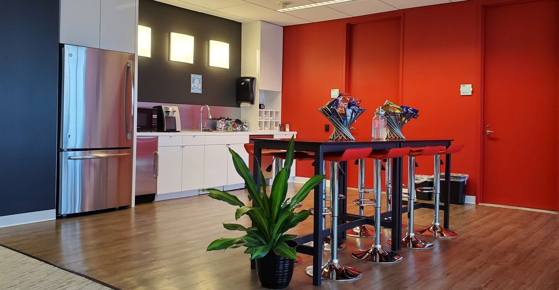 - Unlimited snacks, fresh fruit, Starbucks coffee, tea, and drinks